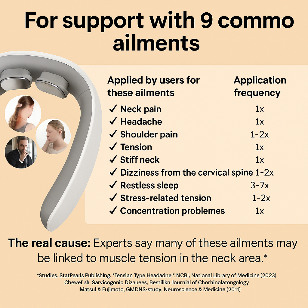 Discover the all-in-one device designed to relieve neck tension, reduce stiffness, and support better posture — all from the comfort of your own home.