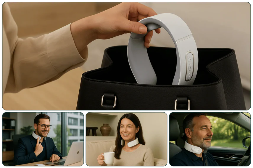 Take relief with you — at home, at work, or on the go. Works quietly and discreetly.
