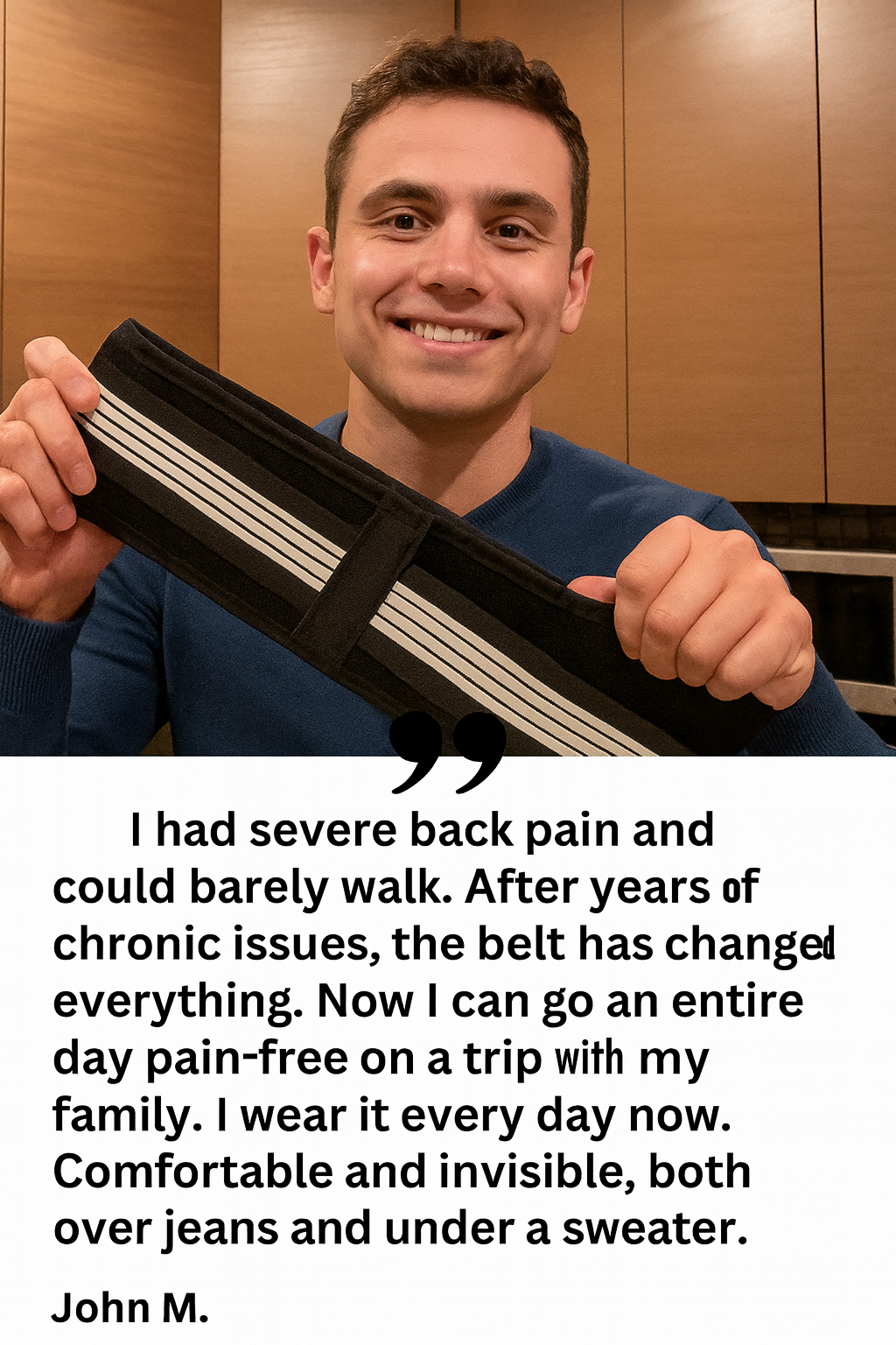 Normally, you would need extensive physical therapy to achieve this level of pain relief. The OrthoBelt allows you to experience this relief in real time — while working, relaxing, or spending time with your loved ones.